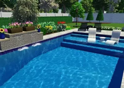 The classic Modern Rectangle shape fits with most any yard design. Our team of expert masons can add a custom-built rock waterfall for a one-of-a-kind feature that will make your pool the pride of the neighborhood. We can also complement your pool with one of many beautiful water features, which are loved by all ages. Many other options are available.